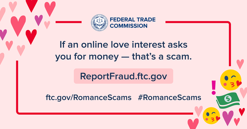 With Valentine’s Day just around the corner, you or your friends might be thinking about love. But not everyone is — some are just looking to get into your pockets. Read on so you can spot and report scammers before they trick someone you care about out of money.