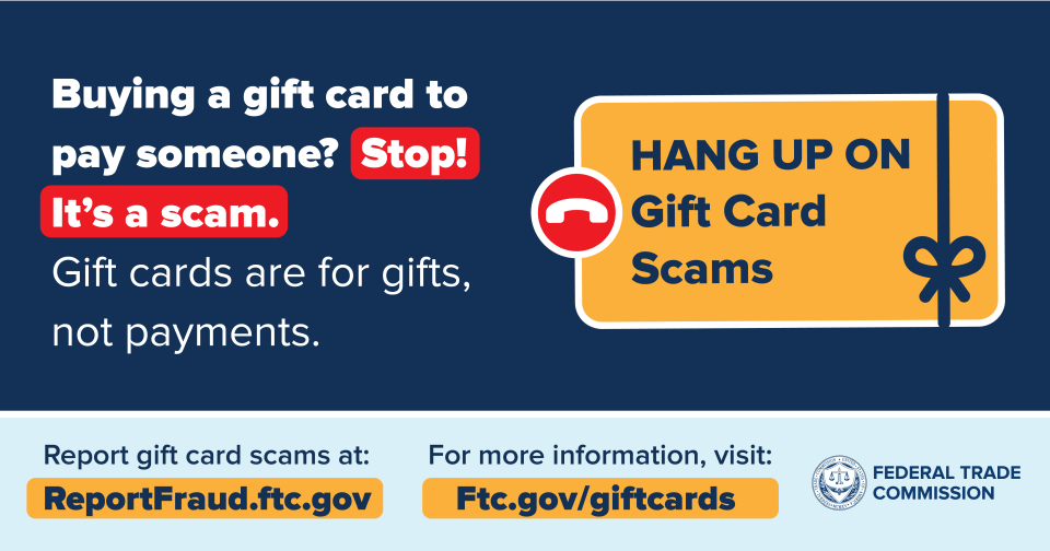 Did someone tell you to buy a gift card to pay a fine or bill? Stop. It’s a scam. No real business or government agency will ever tell you to buy a gift card to pay them. Here’s how to spot and avoid gift card scams.